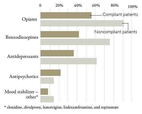 Because of the retrospective nature of this study and the limited diagnostic information available, few criteria used in the diagnosis of SUDs could be evaluated (see Table 1).2 Rather than trying to diagnose abuse or a SUD, the pharmacists collected information about patient noncompliance that indicated misuse for this pilot study.